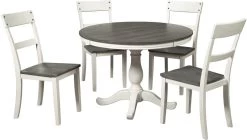 Timeless traditional design with a casual vibe. Small round dining table made with solid wood, white oak veneer and engineered wood. Painted white finish with a dark brown oak top with weathered gray wood grain texture.