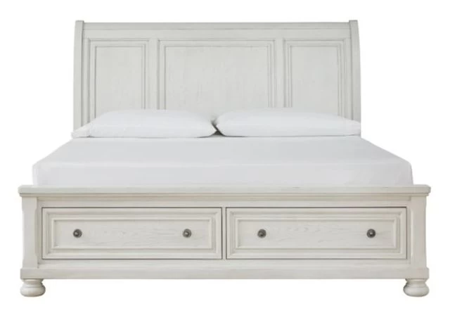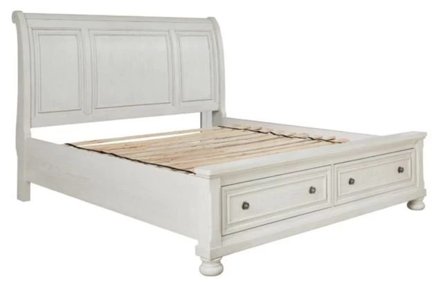 King sleigh bed with storage footboard (headboard, footboard and rails)