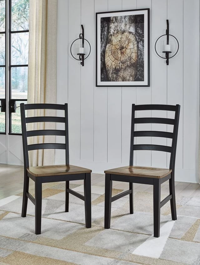 Two-tone finish (seat with deep brown wood tone finish; frame with warm satin black finish)