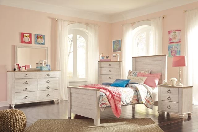 Shabby yet chic, the Willowton collection transforms your living space into the coastal cottage getaway of your dreams. The two-tone, whitewashed finish and antiqued brass-tone hardware bring oceanfront vibes to your space. Create your own private retreat with this collection from Signature Design by Ashley®.
