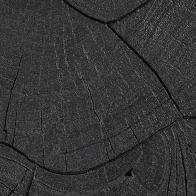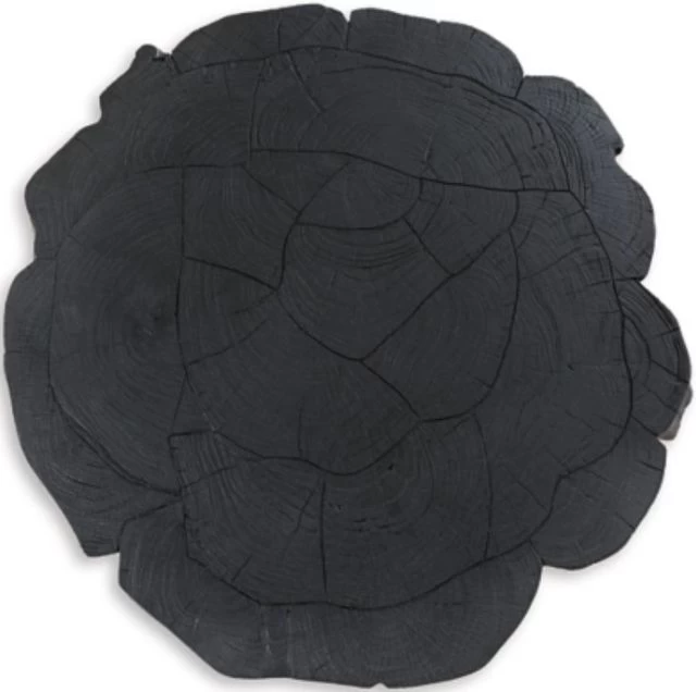 Thick, round live edge with grooved pattern top.