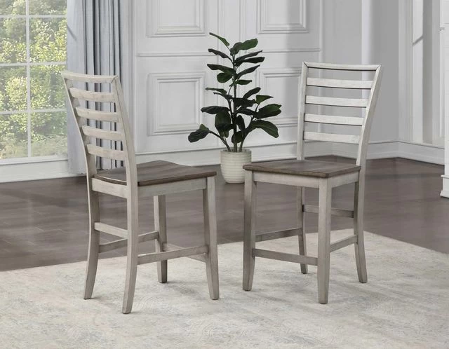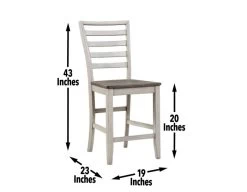 Counter chair styling details include ladderback design chair, shaped wooden seat, tapered legs and stretchers that add strength and comfort