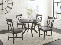 - Constructed of paulownia veneers in a gray finish with gray metal and black hand brush accents.