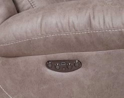 Aria presents power reclining with all the bells and whistles. Buttery soft fabric covers an advanced seating system with 49 pocketed coils in each seat and a lay-flat reclining mechanism. Power articulating headrest and power footrest features are paired with a USB recharging station and storage for the ultimate in comfort and function.