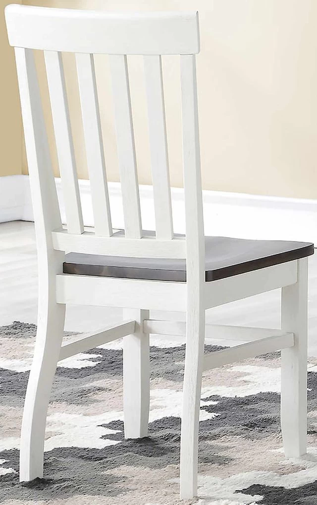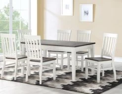 Caylie is modern farmhouse dining in a package sure to fit comfortably in any space in your living area. Two-tone ivory and driftwood finish pairs beautifully with wooden schoolhouse chairs scooped for a more comfortable seat. The clean lines combine with traditional elements to create a transitional style that will fit well in virtually any decor.