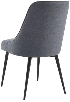 The Colfax side chairs feature a mid-century modern look with canted, round tapered metal legs finished in black. Available in your choice of blue, stone, gray and charcoal fabric or black faux leather.