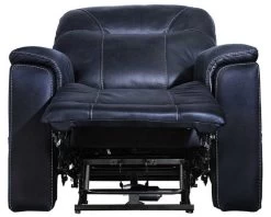 This reclining all-star also has styling with transitional design and a beautiful ocean blue leatherette cover that is pillow-soft to the touch.