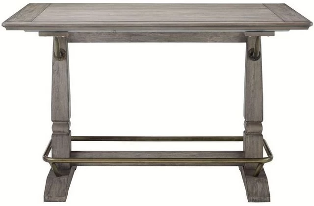 Ryan presents stylish, rustic counter dining is built for the way we live today, featuring a smoky oak finish with antiqued brass hardware and galley rails that recreates the feel of a time-worn antique. The Counter Dining set features Counter Stools that are casual and comfortable and work well with the table or at a separate counter area. Pair with Server for additional serving space or storage.