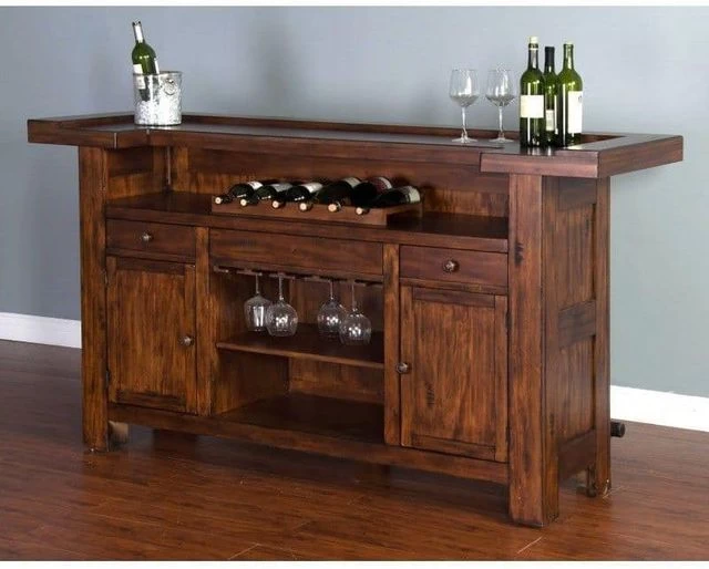 Sunny Designs Tuscany 78″ Bar Top is made from distressed mahogany solids and veneers
