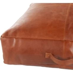 The Barrington Camel 24″ x 24″ Toss Pillow from Surya features a leather patchworked design, and is made in India.