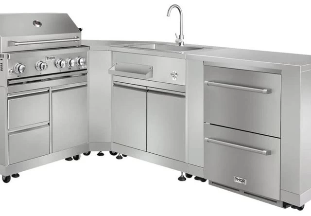 Refrigerator cabinet complements and fits seamlessly with the other pieces of THOR Kitchen’s modular outdoor kitchen suite